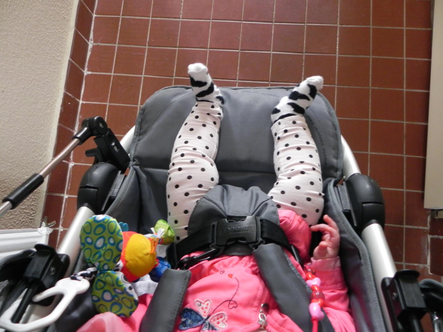 4. Dit is wel de mafste discussie die ik ooit heb gehoord, gewoon een discussie om andere moeders zich ‘slecht’ te laten voelen misschien? (Soms lijkt een bepaalde groep daar op te kicken.) Ik ken genoeg babies die liggend in de wagen al naar ‘buiten’ wilden kijken, zonder succes uiteraard vanwege gebrek aan ontwikkeling, dan heb je echt een probleem als je ze dan met 10 maanden en ouder achtersevoren zet…. (Ziet kindje half uit stoeltje hangen om te zien wat gebeurd.)