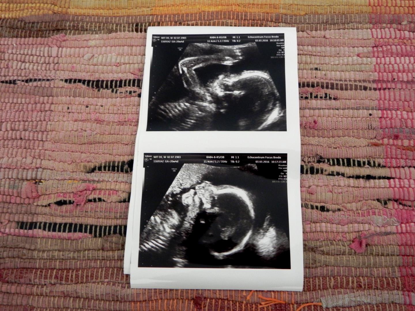 Onze kleine meid was tijdens de echo volop in beweging en lag er goed voor. Dat was weer eens wat anders want bij alle echo’s die ik tot nu toe heb gehad (ook bij Noor) moest er gesprongen, gewiebeld, geschoven en geplast(!) worden in de hoop dat het meten van vanalles en nog wat dan wel goed zou lukken. Maar ons tweede exemplaar liet zich volop zien en wat doet ze het goed! Goed? Geweldig zelfs! Want alles was in orde tijdens de echo. Tijdens de 20-wekenecho kunnen eventuele afwijkingen bij je baby worden opgespoord. Bekende afwijkingen waar naar wordt gekeken zijn of je kind een open ruggetje of open schedel heeft en of het bovenlipje gesloten is.