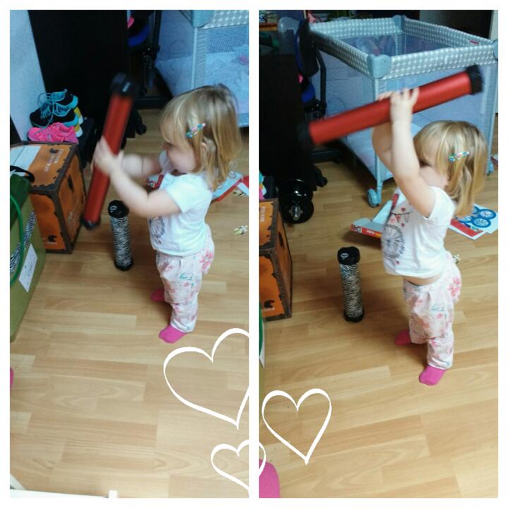 Dit is dus echt mijn party time! Ik ging trainen op zolder. Normaal ga ik het liefst naar een van mijn clubs natuurlijk maar Wim moest die ochtend zijn broer en vriendin ophalen van Schiphol waardoor ik bij de kindjes moest zijn. Geeft niks, maar smiddags nam Wim de kindjes van me over en kon ik lekker trainen.Totdat Noor ook met mama wilde sporten want ze hoorde mijn muziek… haha. Natuurlijk ging ze meteen voor de Xco en maakte perfecte Lumberjacks! Dat ziet mama graag!sAvonds ging ik nog naar een feestje van een vriendin en Noor kwam nog even kroelen en kussen voordat ik wegging. Zo lief! Ook Lot gaf ik een nog een dikke knuffel die vrolijk in de box rond lag te kijken.