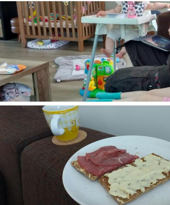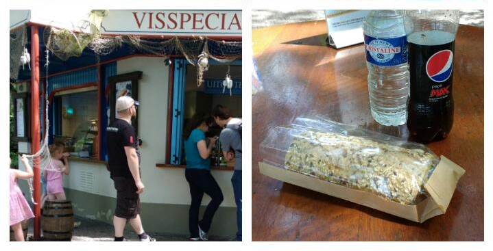 Ondertussen was het al half twee en kregen wij ook honger. Ik haalde een vers broodje met brie, walnoten en honing bij Station de Oost en Wim nam een bakje kibbeling bij de Meermin. Op het terras aten we onze late lunch terwijl Lot lekker lag te slapen en Noor ook lekker in de kinderwagen uit lag te rusten.