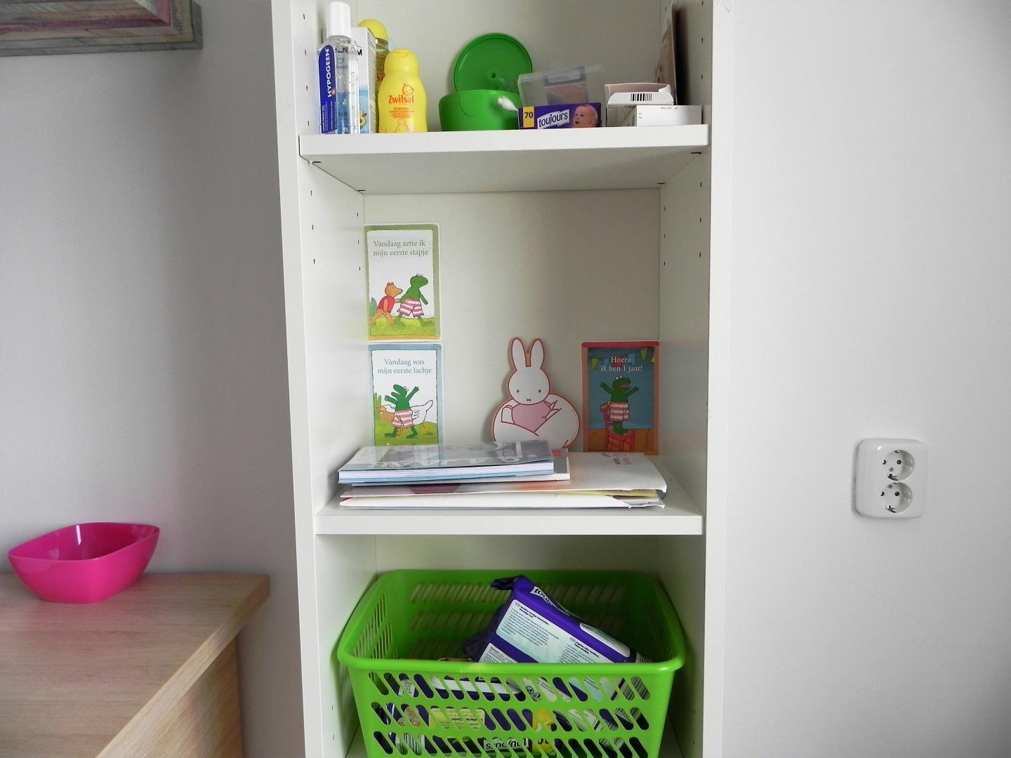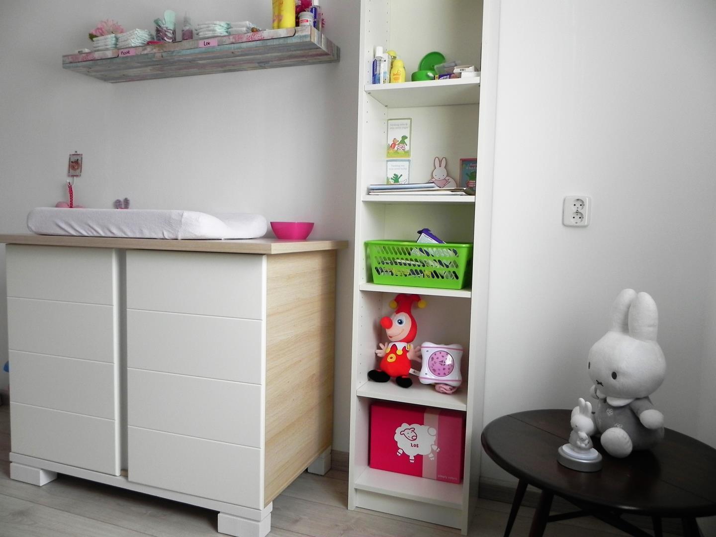 En natuurlijk een commode. En links op de grond een deurstopper die echt noodzakelijk is met een enthousiaste peuter die bij haar baby-zusje de kamer opstormt!