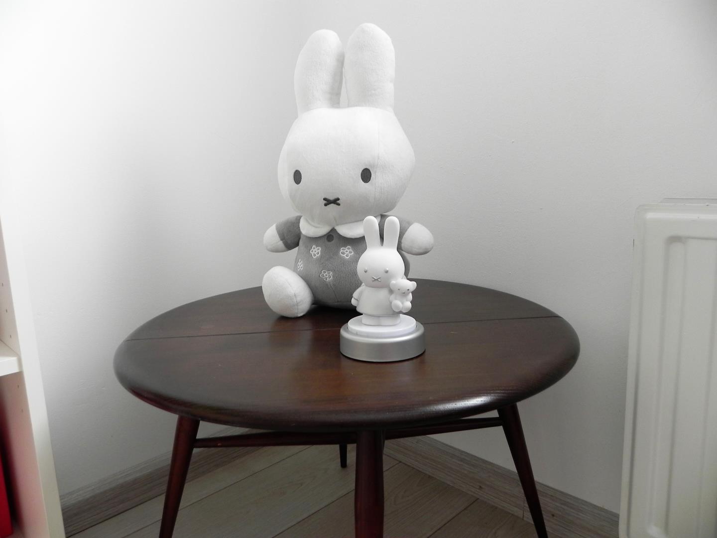 Omdat er lekker veel ruimte is, zette ik dit leuke inklapbare tafeltje hier neer met de Nijntjes erop. Het tafeltje is van mijn oma geweest en is lekker retro.
