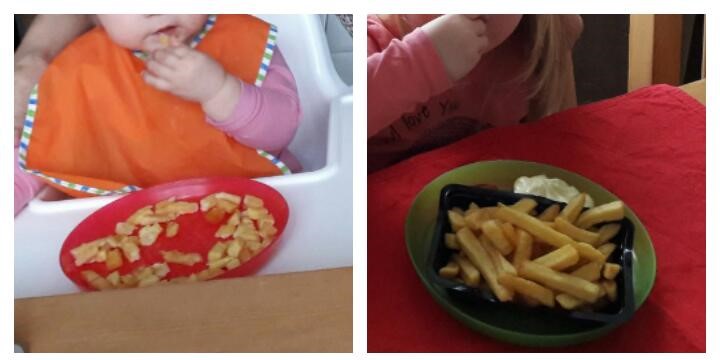 Ondertussen kreeg ik leuke foto’s van mijn moeder doorgestuurd: ze waren lekker frietjes aan het eten met de meiden!