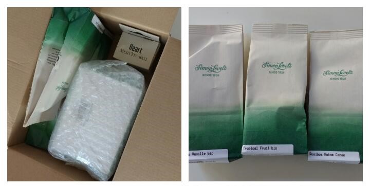 Het pakketje bestond uit drie heerlijke smaken verse thee, een thee-ei in de vorm van een hartje en een hele toffe mok! Dat zou helemaal goed komen met die thee-date. Toch?!