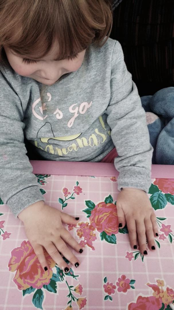 Natuurlijk niet bij onze dreumes, maar Noor vindt dit altijd heel leuk om te doen. En natuurlijk wil ze dan net als mama zwarte nagels, haha!