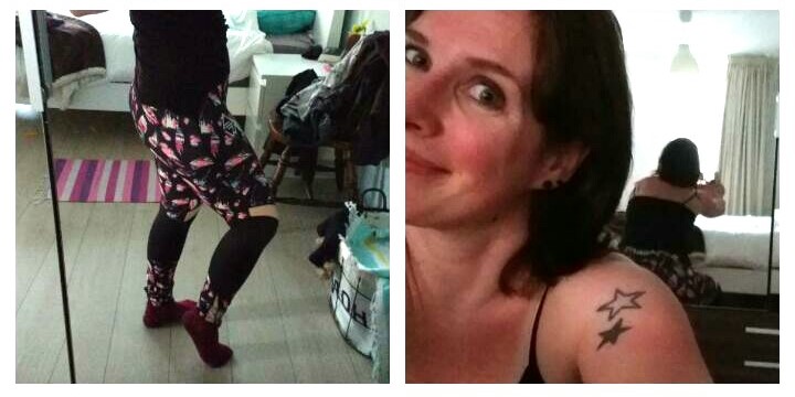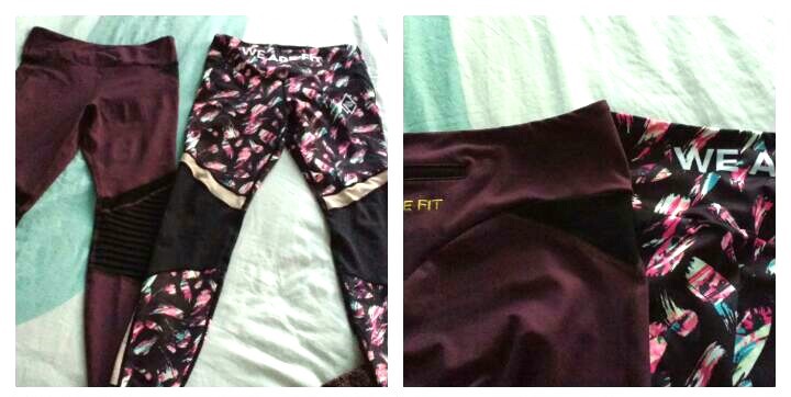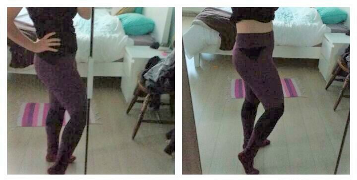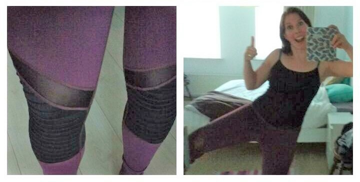 Ja, geweldig: deze tights van het Noorse merk We are Fit hoef je dus niet steeds omhoog te trekken omdat anders het kruis op je knieën hangt! De linkse paarse tight is de Limited Edition Rebel en de tight op rechts is de Sculpt tight (nu met een flinke korting te koop!!). En echt: ze zitten heerlijk. Ze zakken gewoon ECHT niet af. En ik kan het weten want ik squat, jump en burpee heel wat af, haha!