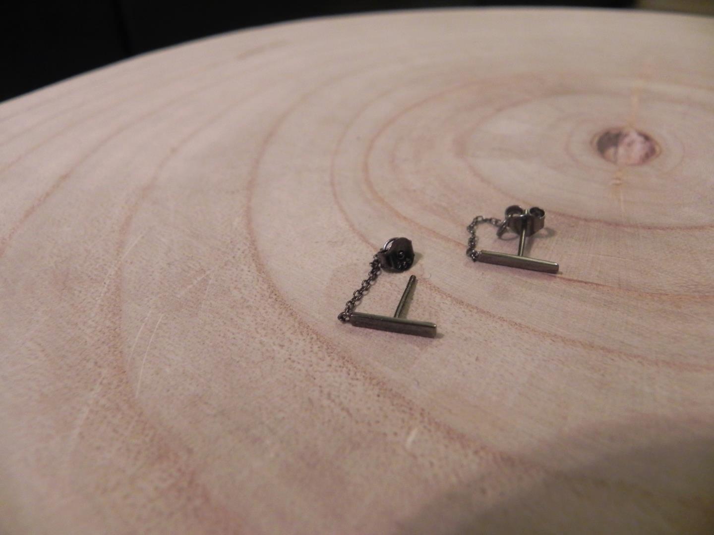 De set bestaat uit 3 paar oorbellen: knopjes, ringetjes en smalle plaatjes met kettinkjes naar de sluiting en vooral die laatste vind ik erg mooi! Ze zijn allemaal Blackplated waardoor het een stoere uitstraling krijgt.