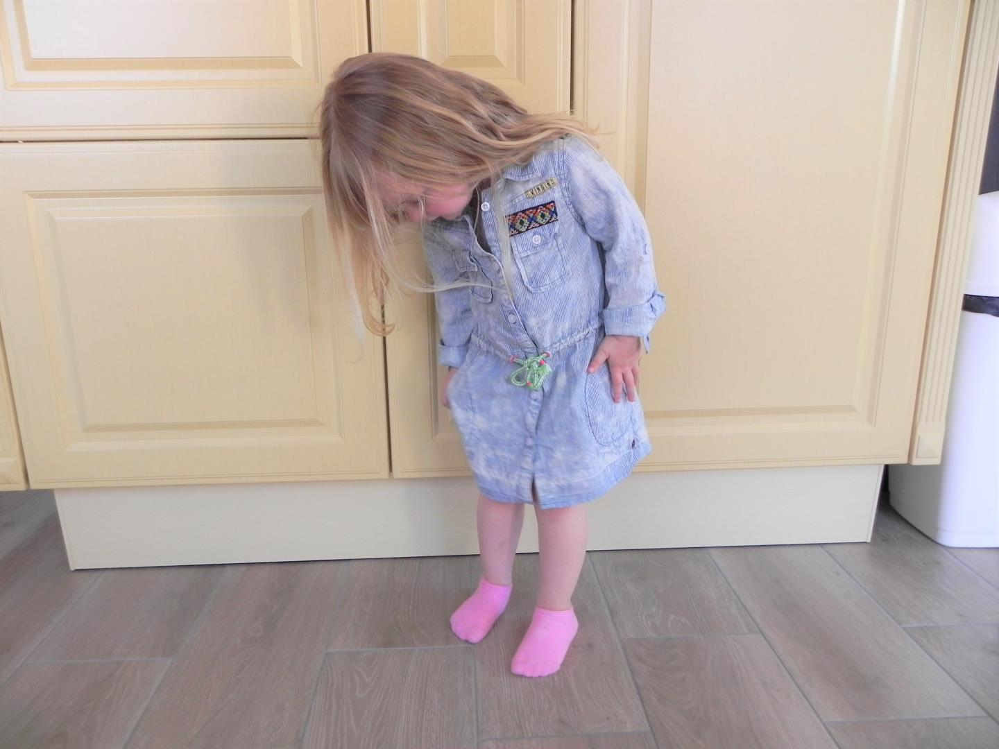 Wat een leuke nieuwe kleren heeft ze gekregen! Jeans staat haar echt leuk ook 😀