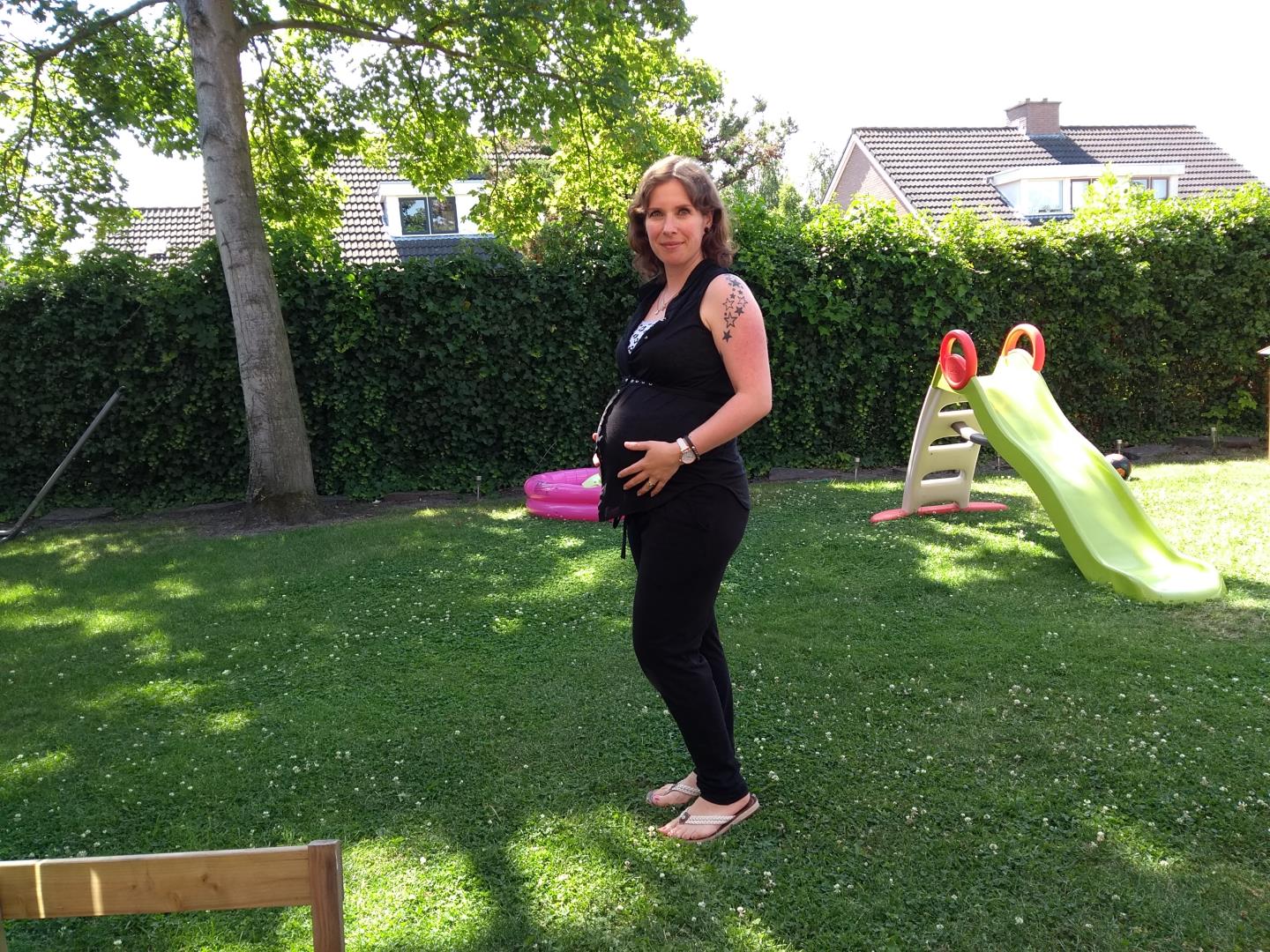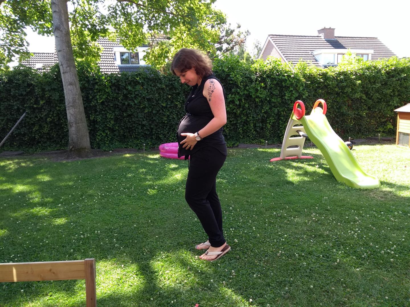 De lage bloeddruk in de ochtend heb ik nog steeds en dat zal ook niet weg gaan, maar ik voel het goed aankomen en kan er op inspelen door te gaan zitten. Dan hoeft mijn hart het bloed minder ver rond te pompen en dan zakt het weer snel. Gelukkig komt het na negen uur ’s ochtends eigenlijk niet meer voor. Ook op mijn werk krijg ik de ruimte en de mogelijkheid om er een stoel bij te pakken en mijn collega’s zijn super lief en letten goed op me. Maar goed, die buik! Ik stoot van alles omver en loop tegen allerlei dingen aan want ik vergeet steeds dat mijn buik zo huge is, haha.