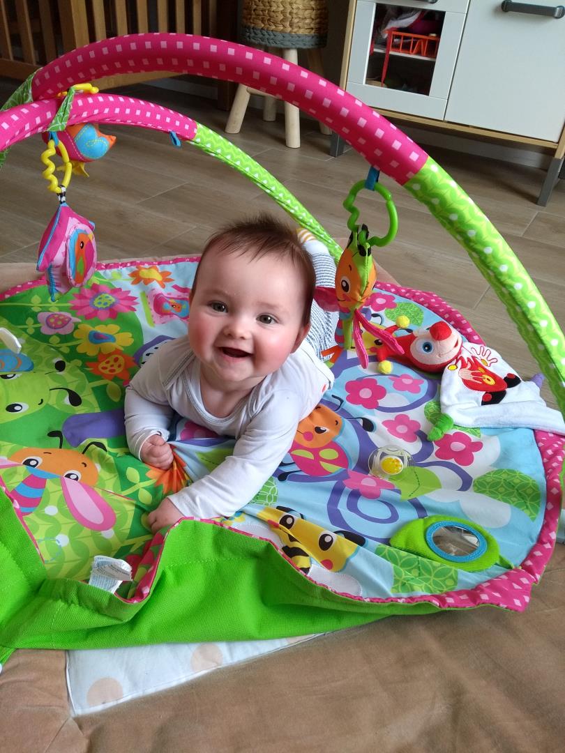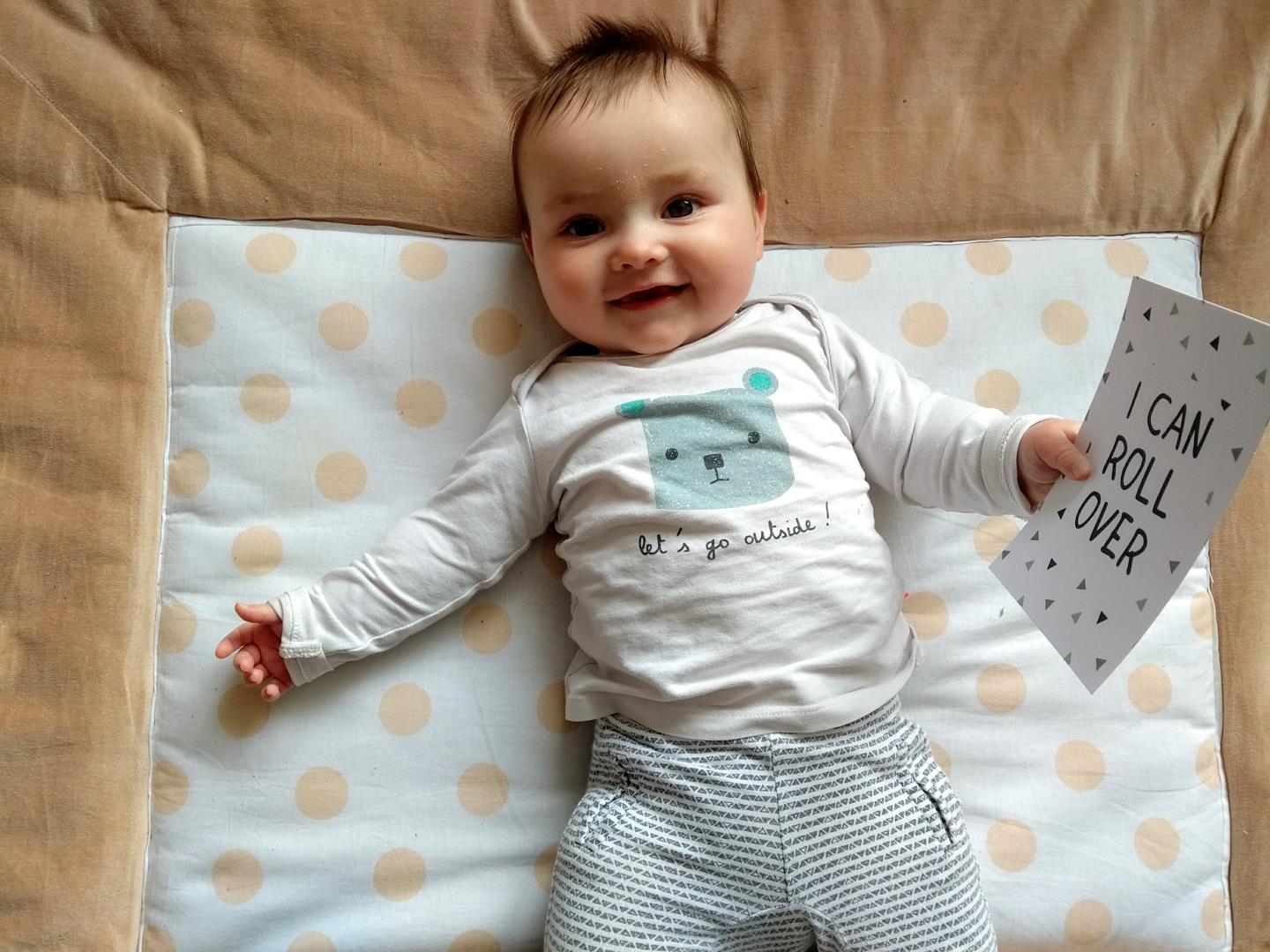 Onze vrolijke vriend rolt al een tijdje vanzelf om, maar nu doet hij niks anders dan dat als we hem op een kleed of in de box leggen. Hij vindt het helemaal leuk, ik iets minder. Nee, tof voor hem maar als ik naar de keuken loop, moet plassen of met zijn zussen bezig ben dan vind ik het dus iets minder fijn. Zo’n moeder ben ik. Ook nog met de derde ja. Wie had bedacht dat je dan makkelijker zou zijn als moeder? Als in: losser, relaxter. Nou ben ik dat op heel veel vlakken ook juist wél, maar op “help-er-kan-iets-gebeuren-niveau” ben ik daar gewoon helemaal niet relaxter in geworden. Dus dat omrollen, ja leuk, maar wel als ik hem kan zien. Vriend.