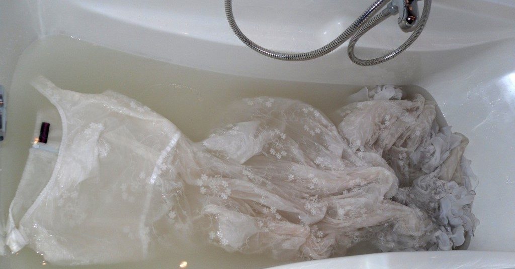 Oef, dat was spannend: mijn trouwjurk in bad doen! Waarom ging mijn jurk in bad? Het is een jurk met een verhaal.