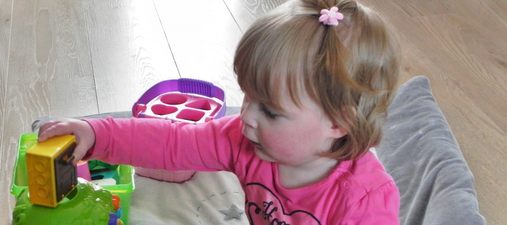 Letterlijk. Vooral plastic bakjes zijn favoriet. En eierkoeken. Regelmatig tref ik op een willekeurige plek in huis een zak eierkoeken aan (“koek, koek!” roept ze dan). De poging om die zak open te maken mislukt tot nu toe (gelukkig!) nog, haha.