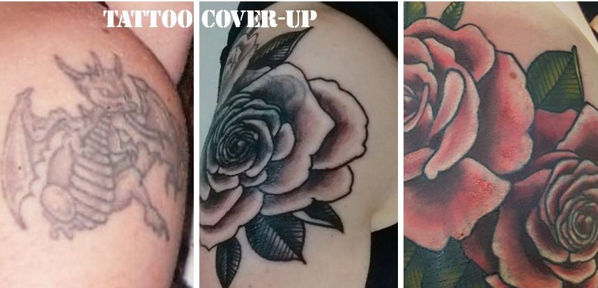 Eindelijk heb ik een cover-up laten zetten! Weg met die drakentattoo want ik was dat draken-face zo ontzettend beu. De cover-up is super mooi geworden, ik ben er echt heel blij mee! Twee roze rozen voor onze twee meiden. Kijk, de keuze was: weg laten laseren zoals ik eerder gedaan heb met de bliksemschicht onder mijn sleutelbeen of een andere tattoo eroverheen laten zetten. En omdat ik echt wel gek ben op mooie tattoo’s en iets voor de meiden wilde hebben, werd het deze keer een cover-up. En het resultaat is echt gaaf. Zoveel beter dan dat draken-face 😉