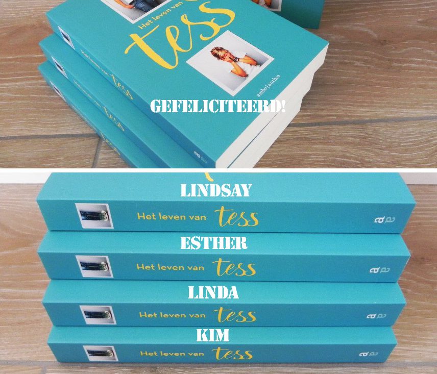Gefeliciteerd Lindsay, Esther, Linda en Kim! Jullie krijgen een persoonlijke mail en het boek komt jullie kant op. Heel veel leesplezier!
