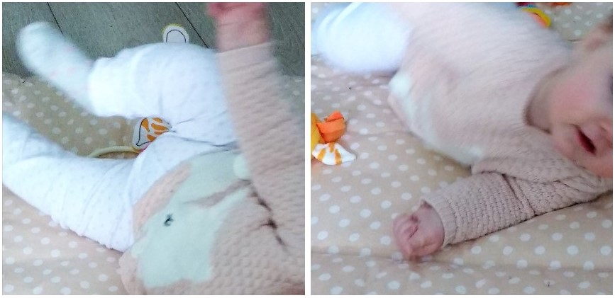 Lot werd wakker en ze at lekker een boterhammetje op bed! Daarna ging ik haar uitgebreid in bad doen (lekker warm!!) en speelde ik met haar op het boxkleed.