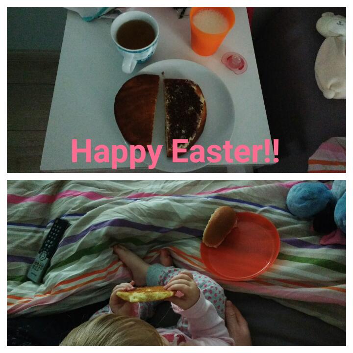 Toen we thuis kwamen gingen de meiden meteen naar bed. Lot had haar fles al bij mijn ouders gehad en Noor had die ochtend al genoeg gegeten (gesnoept!) dus die ging ook meteen lekker slapen. Wij maakten daar gebruik van en aten lekkere broodjes! Ik nam een broodje met cottage cheese en komkommer en een met ei (want: Pasen, ja). We konden zelfs nog een beetje Netflixen voordat de meiden weer wakker waren!