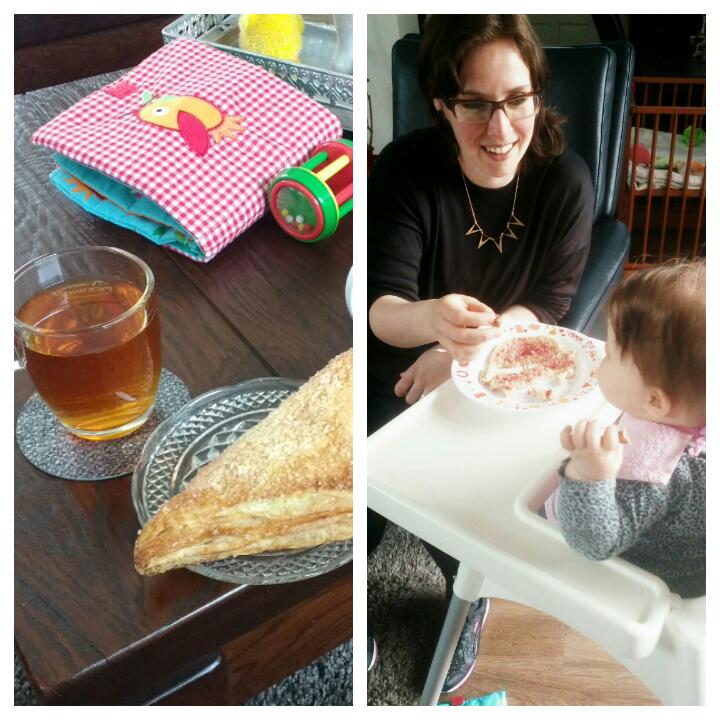 Bij mijn ouders dronken we eerst koffie en thee met een appelflap (hmmm) en Lot kreeg een boterhammetje met jam.