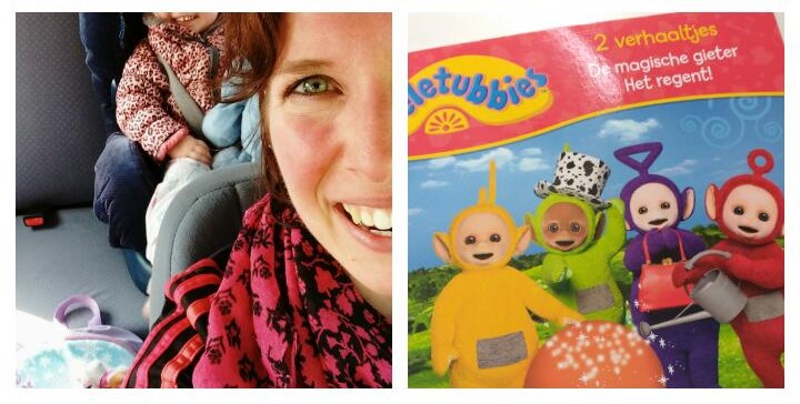 Na een heerlijke les BURN die ik volgde, deden we even gek in de auto op de parkeerplaats van de Jumbo. Noor en ik deden even een snelle boodschap (verse eierkoeken!) voor de lunch en ze mocht van mij een boekje uitzoeken. Het werd dit boekje van de Teletubbies omdat Lot die ook leuk vindt.