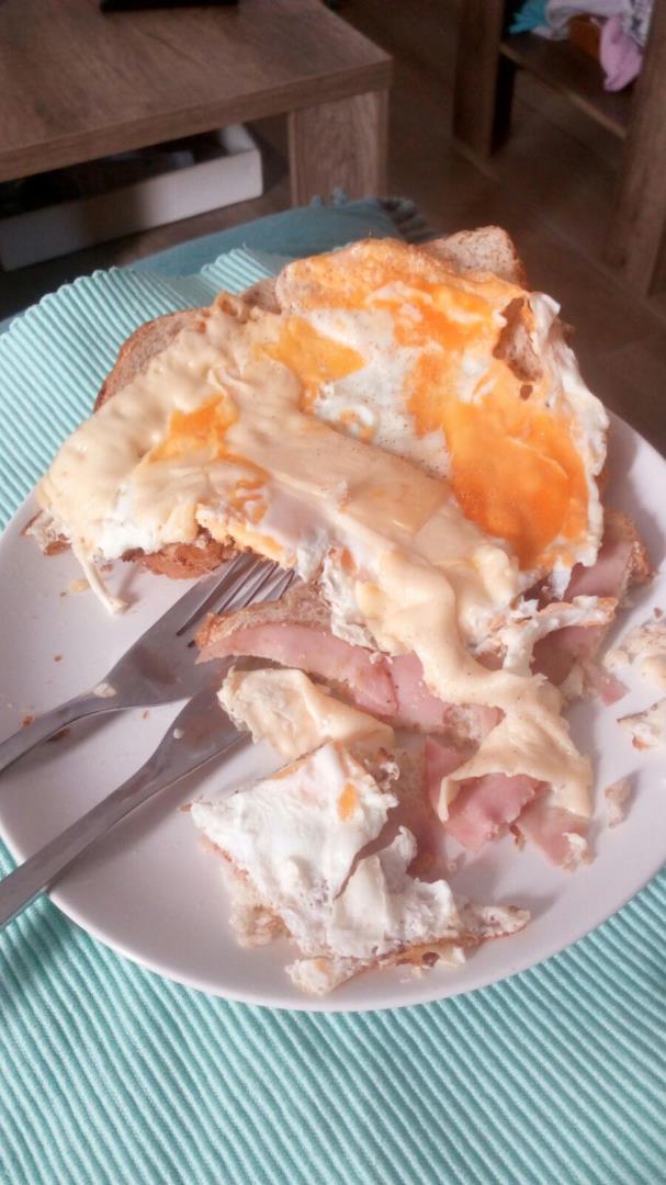 Toen we die middag terug kwamen, was het al bijna etenstijd! Wim sprong nog even onder de douche terwijl ik Lot haar eten gaf en daarna bakte Wim voor ons een ei. Super lekker met ham, kaas en een beetje peper en zout. Echt prima voor op een zondag avond. We aten lekker gezellig op de bank, dat doen we op zondag meestal. Dat vind Noor ook helemaal geweldig dat we dan niet aan tafel hoeven te zitten 🙂