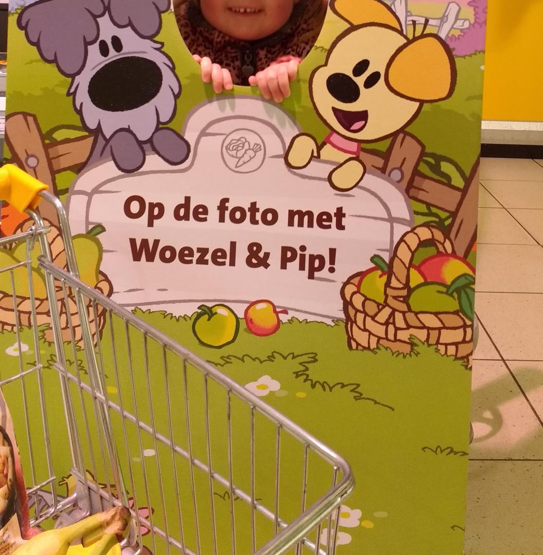 In de middag ging ik nog even met Noor een boodschap doen en toen stond daar ineens een fotobord van Woezel en Pip (wat? waarom?) in de winkel. Natuurlijk moest er een foto gemaakt worden!