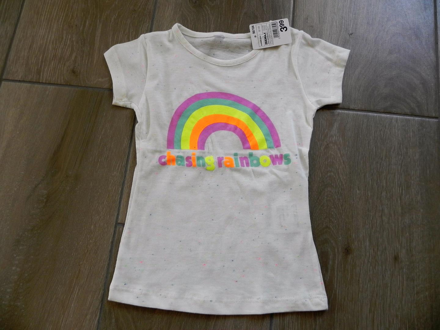 Chasing rainbows! Echt een heel leuk shirtje is dit. Ik kocht ‘m voor Noor en ze vond ‘m al meteen heel mooi met al die kleurtjes. Het is heel soepel stofje dus echt lekker voor de zomer.
