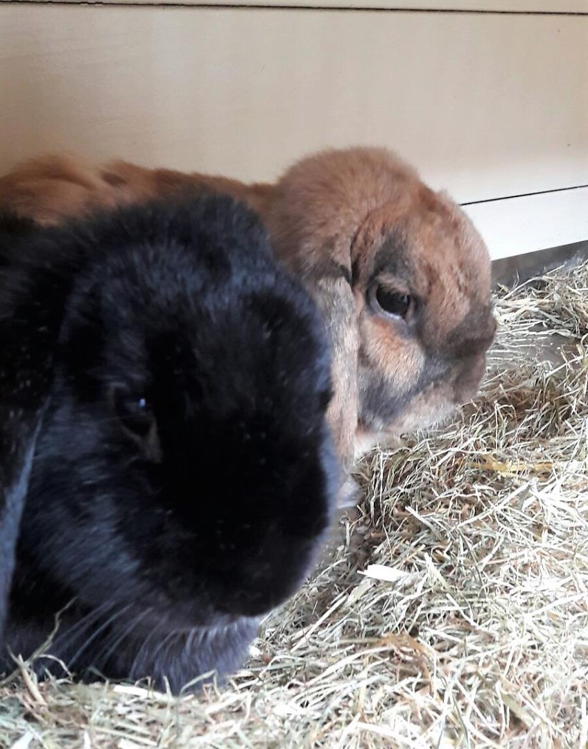 Mijn moeder appte me deze foto van onze konijnen. Noor vroeg zich af hoe het met Flom en Fjord ging die bij opa en oma aan het logeren waren. Met deze foto was mevrouw tevreden.