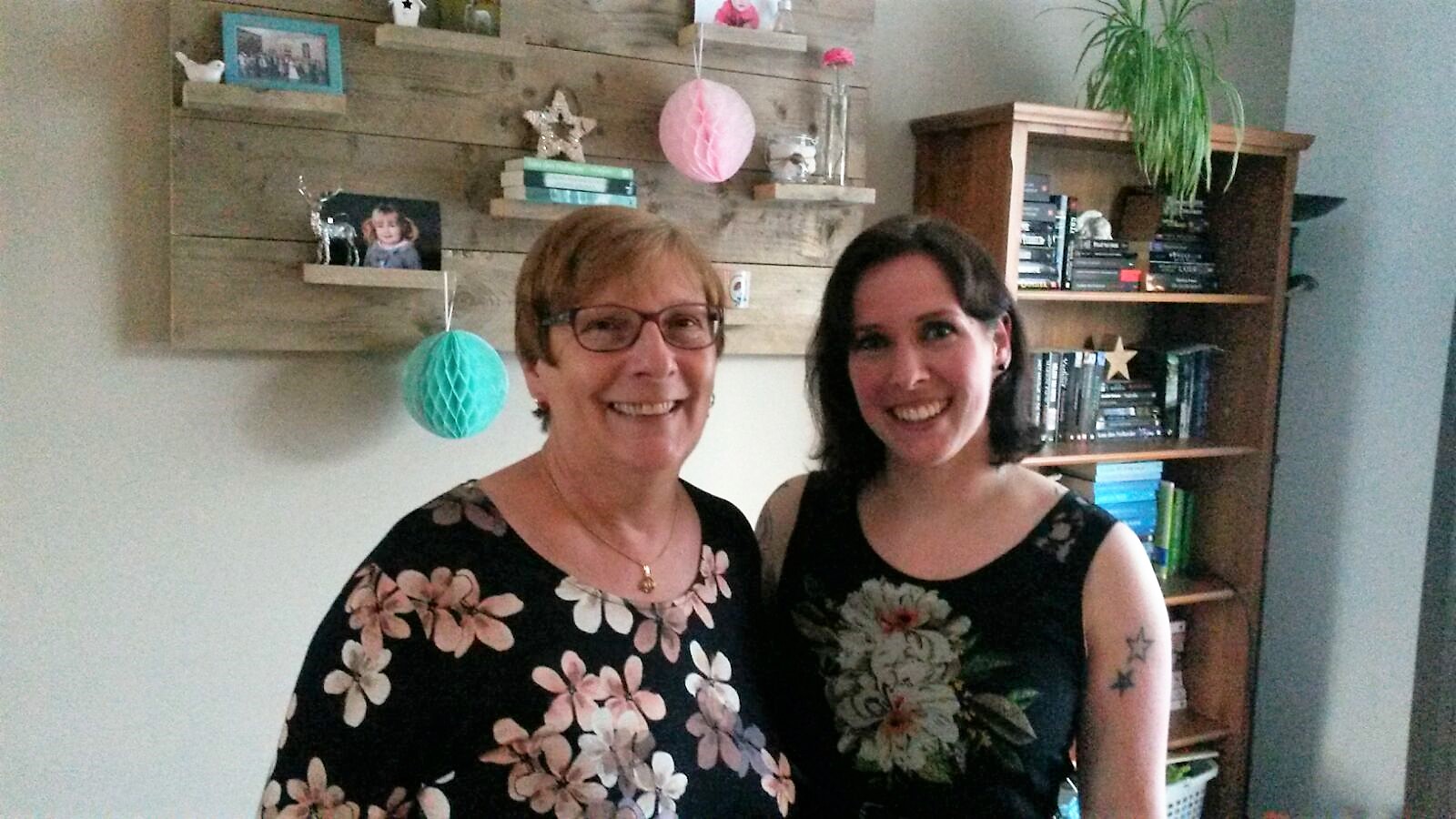 Mijn ouders kwamen ons ophalen en Wim maakte deze foto van mij en mijn lieve moeder. Ook zij kan party-en like a mom, geloof mij, haha 😉