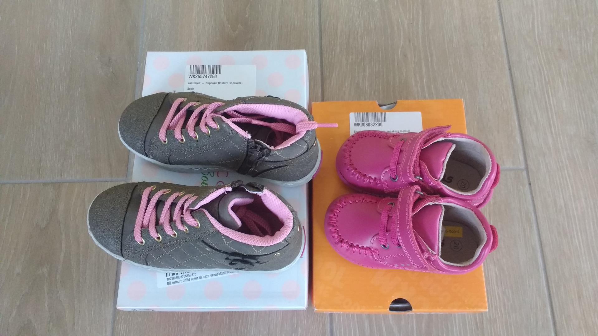 Kinderschoenen kopen: een ellende vind ik het! Hoezo zijn die dingen binnen een maand weer te klein (ja, groeispurt, I know) en waarom is het zo moeilijk om leuke, degelijke en niet belachelijk dure exemplaren te vinden? Pfff. Ik kon het bij de meiden niet meer uitstellen, maar vertikte het om weer zwetend en binnensmonds vloekend bij de Bristol te staan dus ik kroop achter de laptop en bestelde twee paar schoenen. Of eigenlijk drie. Of het een succes was?