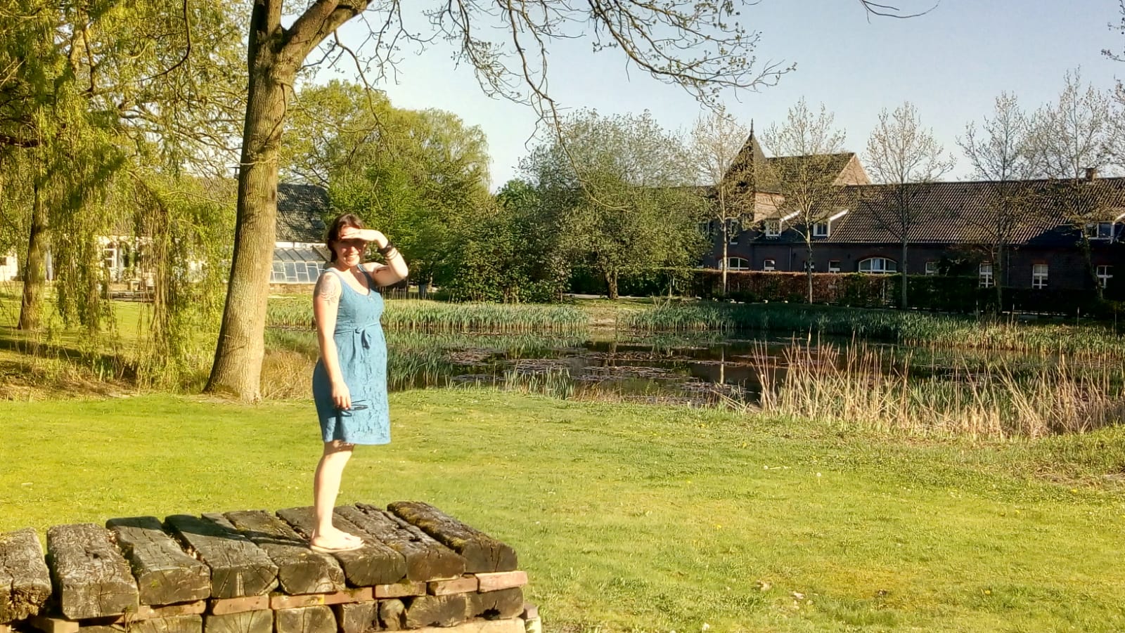 Nadat we de kamer geïnspecteerd hadden (die badkamer ♥) gingen we het terras op. Met 25 graden was dat geen straf natuurlijk. En met dat uitzicht op het landgoed al helemaal niet! We liepen nog een rondje over het landgoed en daar moesten natuurlijk ook foto’s gemaakt worden (kijk die buik ook al!).