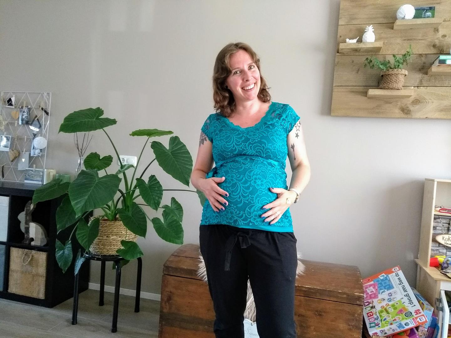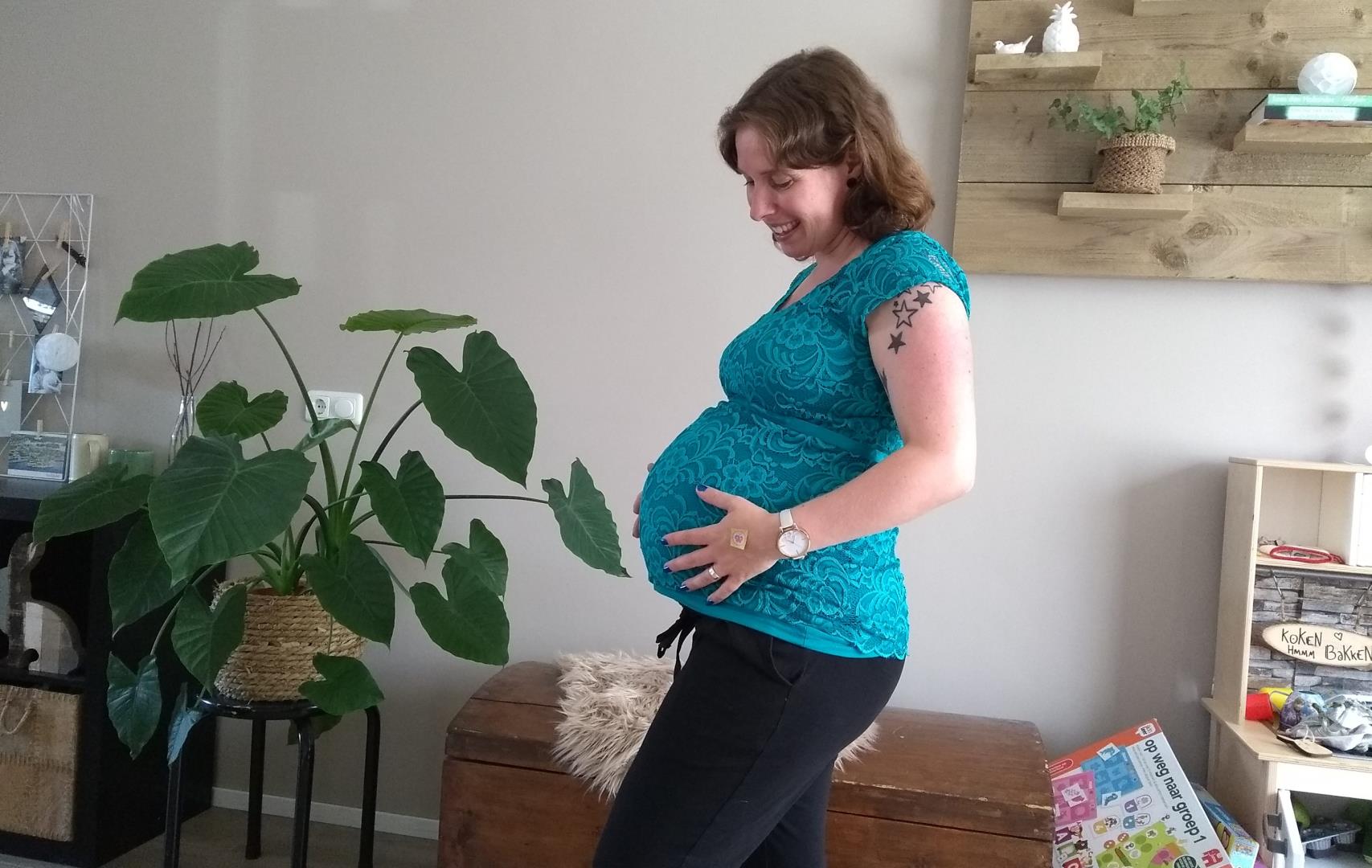 Toegeven: toen ik de foto’s zag voor dit artikel dacht ik zelf ook ‘Zo, die buik!’. Not normal. Ik draag ook echt naar voren, dat was bij mijn vorig twee zwangerschappen ook zo. Met die 1m58 moet er ergens heen he, haha. Hoeveel weken denk jij dat ik op deze foto’s ben?