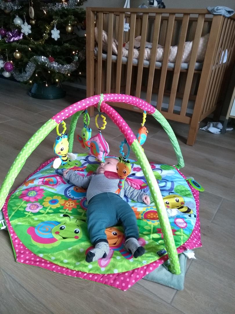 De meiden vonden het trouwens helemaal leuk dat ik ook -net als hen- een rokje aan had. En natuurlijk moesten daar foto’s van gemaakt worden. Een stuk of tien voordat er één bij zat waar niemand gek op deed, ja π En Ben testte zijn babygym (lekker roze ook, haha) voor het eerst uit.