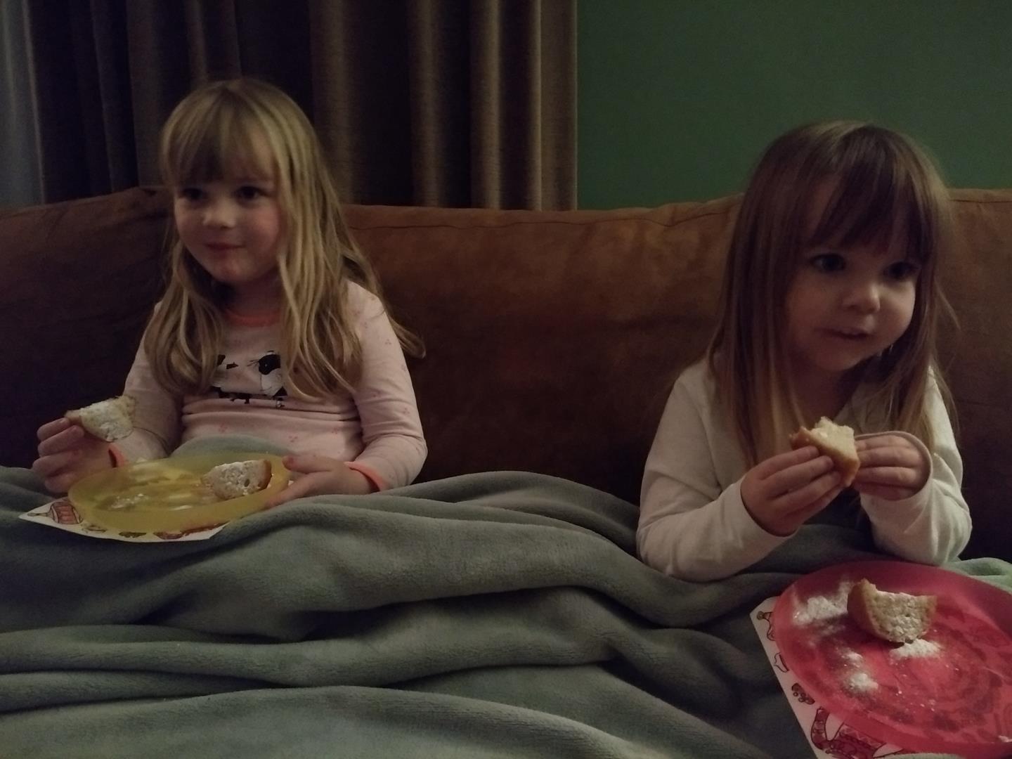 Dan Oud & Nieuw. Ook weer vrij! Heerlijk! We hebben de avond lekker met ons gezin doorgebracht. En dat was fijn. Met de geboorte van Ben, alle kraamvisite en de feestdagen vond ik een relaxte Oudjaarsavond wel een goed idee. Geen glitterpanty’s en make-up maar m’n Netflix broek enΒ bril. Wim bakte samen met de meiden pannenkoeken en om half twaalf mochten ze naar beneden voor oliebollen en vuurwerk.