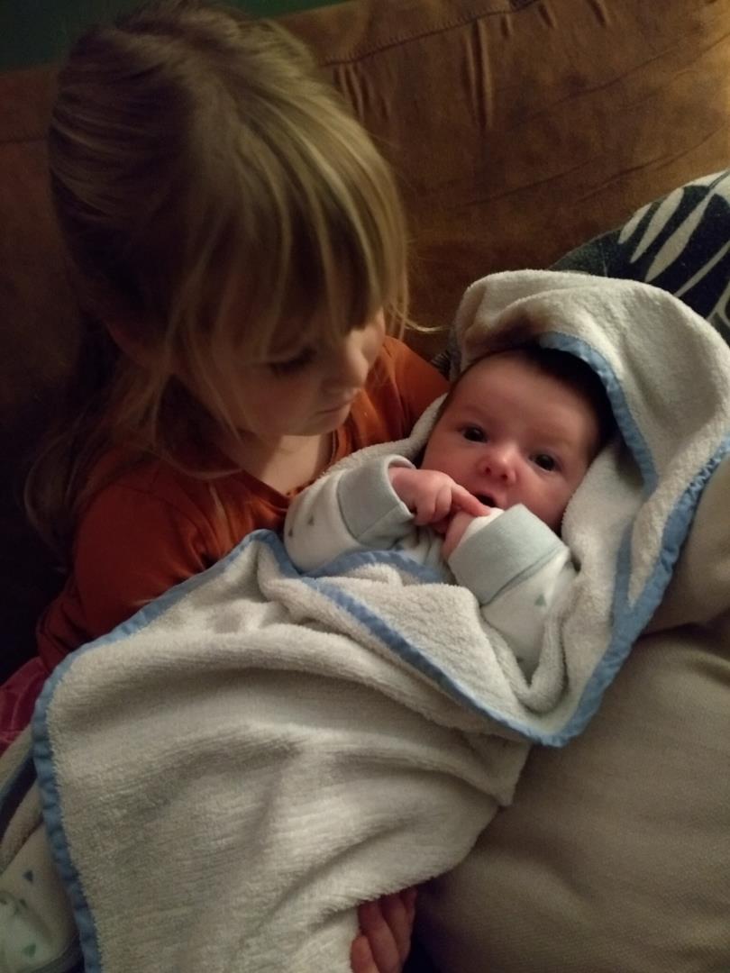 Als het tijd is om Ben in bad te doen zijn de meiden ook altijd wel in de buurt van de badkamer te vinden. Even de handoek aangeven of helpen met haartjes wassen 🙂