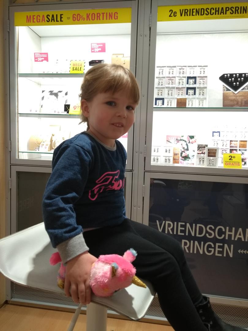 En echt: ze liet geen kik. Ze bleef er zelfs bij glimlachen. De dames in de juwelierszaak waren vol verbazing want dit maakte ze nooit mee bij zulke jonge meiden. Lot keek natuurlijk vol trots toen ze dit hoorde en ik al helemaal π Knap kind van me β₯