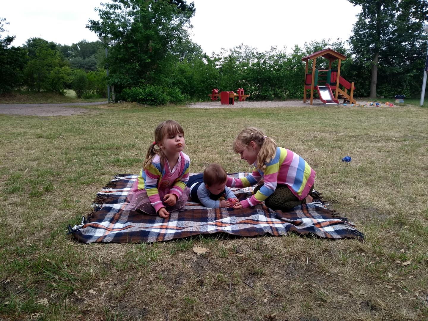 Ik vond dat voorheen soms best een uitdaging. Al die spullen mee voor al die kinderen. Een gevulde luiertas. Schone onderbroekjes voor ongelukjes. Speelgoed. Knuffels. Doekjes. Fruit. Koekjes. En o,ja ook wat te drinken. Inmiddels ben ik daar een stuk makkelijker in. Ik stop een schone luier in mijn kontzak, druk de meiden hun knuffels in hun handen. Een flesje water en een zakdoek in de buurt en go. Iets niet bij me? Jammer dan. Het is zo echt veel relaxter om weg te gaan. En nu Ben een dreumes is, gaat het ook een stuk makkelijker natuurlijk. Hij loopt lekker mee, zit een autostoeltje. We hebben geen Maxi Cosy meer nodig en ook geen kinderwagen bij kleine stukjes lopen. Fijn!