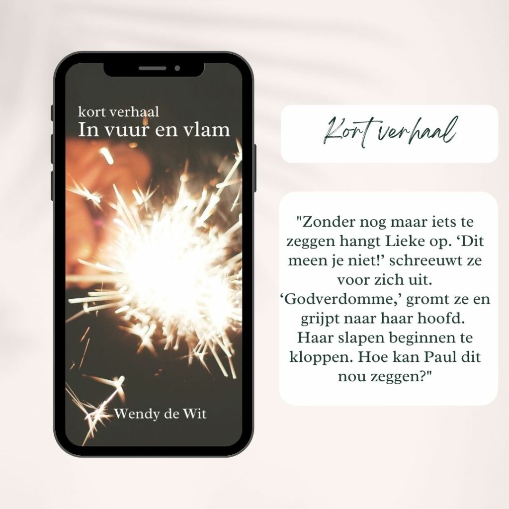 “In vuur en vlam” is een van de vele korte verhalen die ik geschreven heb. En hij is voor jou. Je mag ‘m lezen. En je mag best weten dat ik het heel spannend vind om dit online te zetten. Het is alsof iedereen mee kijkt in mijn hoofd… dit is echt even buiten mijn comfortzone! Maar daarom doe ik het. Want juist daar zit groei! En ik vind schrijven en lezen zo heerlijk, dus hoe kan ik het niet doen? En ooit komt er een “echt” boek, maar laat ik eerst hier eens mee beginnen.