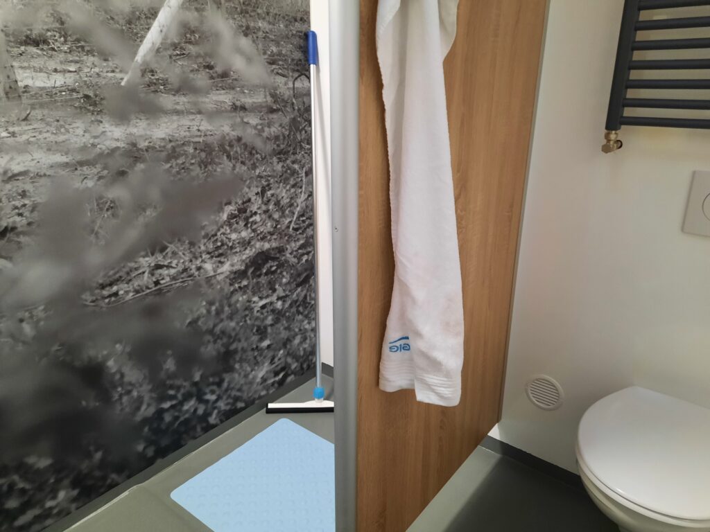 Flink irritatiepunt was dat de afgelopen jaren tijdens de vakantie ja, dus het was echt zo fijn om op elk moment van de dag de kinderen op ons gemak te kunnen douchen. En dat alles schoon was en helemaal voor onszelf! Wat een luxe. We hadden in onze privé badkamer ook prima de ruimte om daar de wasmanden de elektrische koelbox neer te zetten zodat we deze niet in de voortent hadden staan.