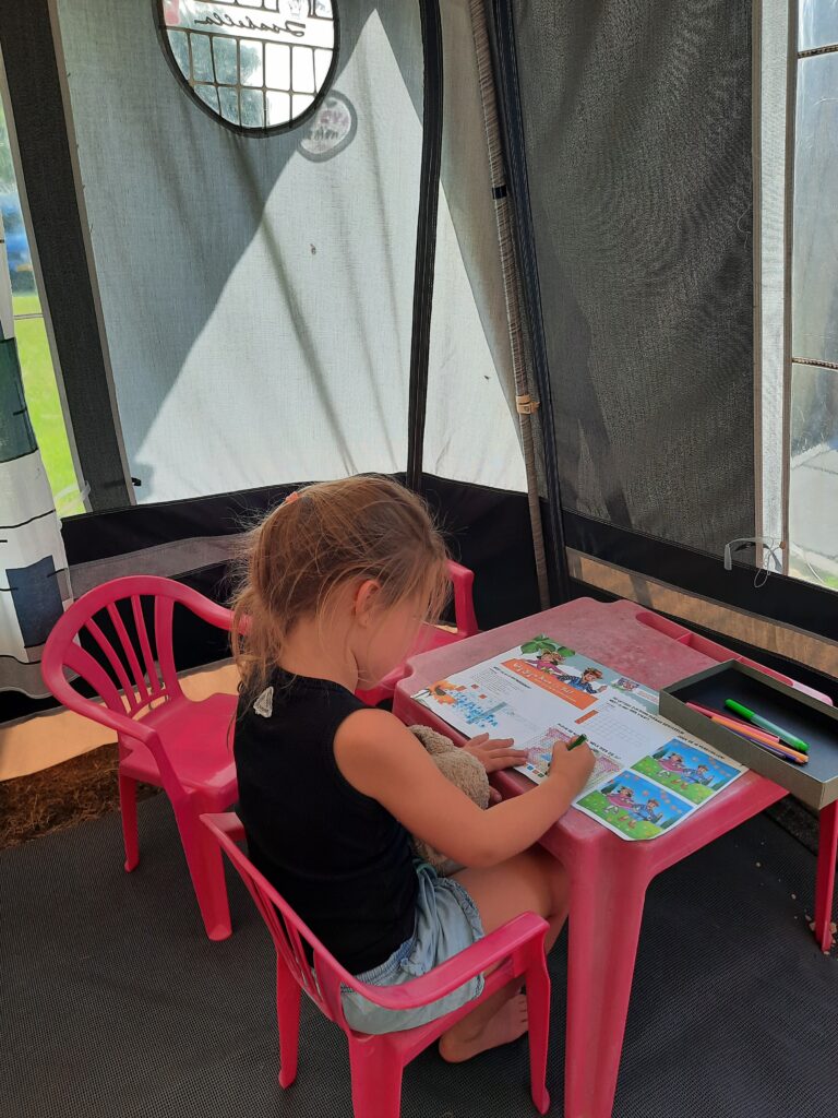 Daarnaast was er op de camping zelf genoeg te doen voor de kinderen: knutselen, sport en spel met de animatie, een zwembad, een meer, binnen- en buitenspeeltuin en een sportveld. Schuin achter onze kampeerplek zat een speeltuin en voor me had ik dus een uitzicht vol groen. Perfecte combinatie! Het enige minpuntje was de wespenplaag in het Noorden, zeker de eerste week werd ik daar niet perse ontspannen van en had ik een steek van een Hoornaar te pakken onder mijn voet… De tweede week werd het gelukkig wat rustiger met het vliegende prikkende volkje.