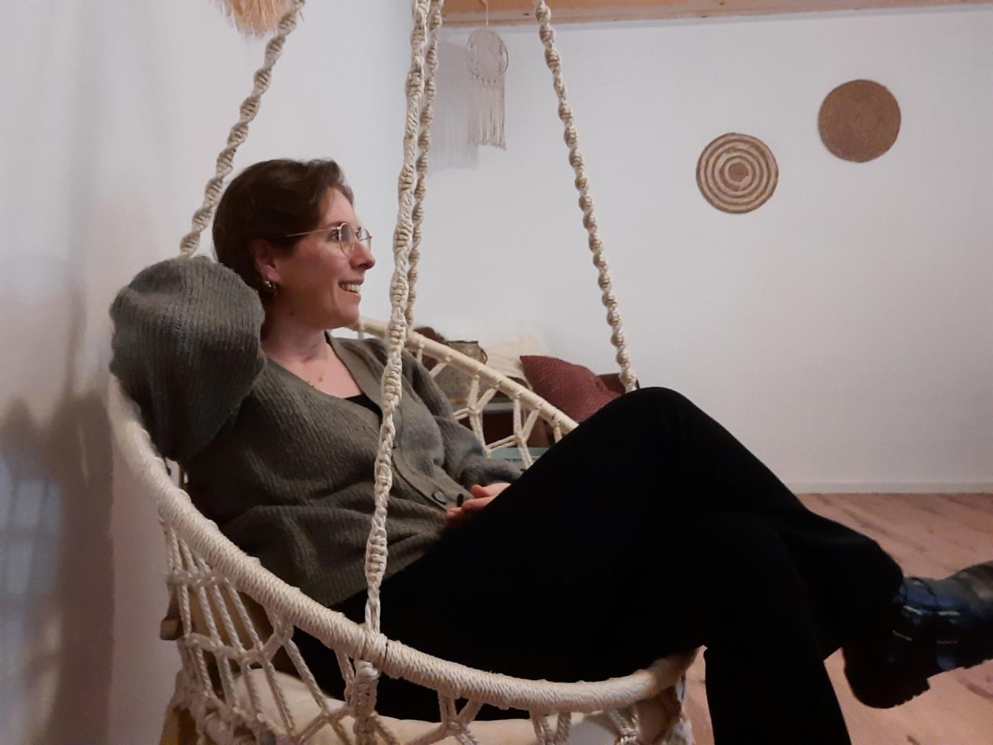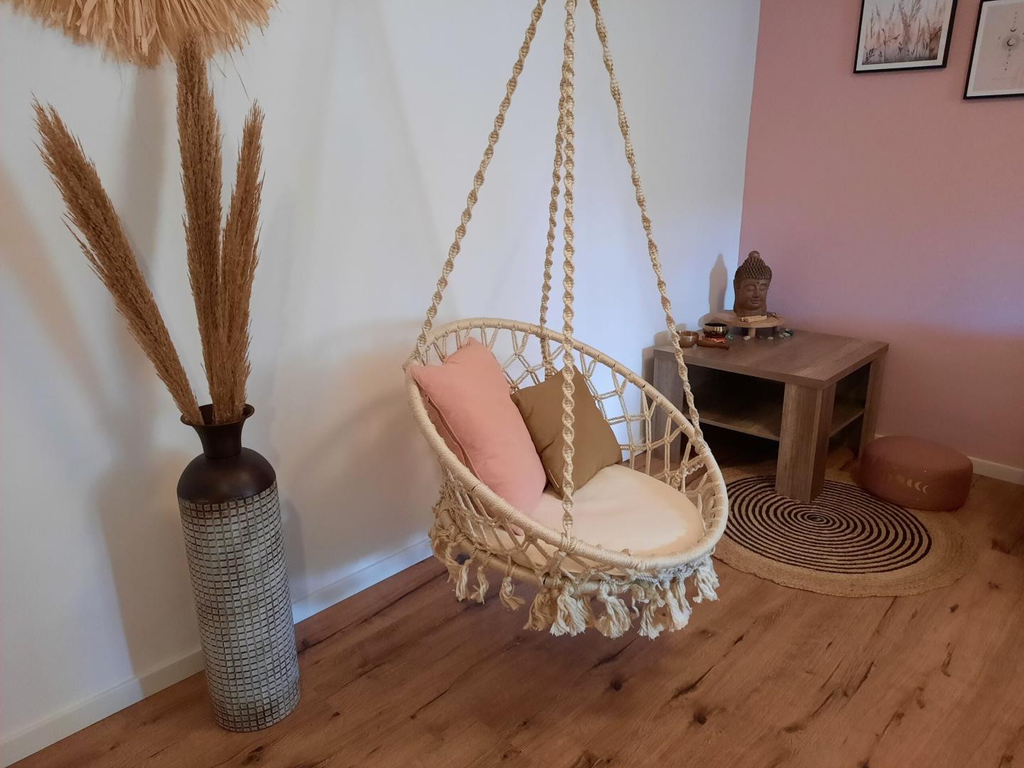 Heerlijk wegzakken in een hangstoel die zachtjes heen en weer schommelt betekent ultiem relaxen. En toegeven: mijn studio is ook wel de perfecte plek om een hangstoel op te hangen. Het is een plek waar ik kan ontspannen, schrijven of een yogamatje uitrollen.