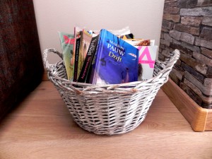 En ik mijn gezicht maar in de plooi proberen te houden wanneer er een stuk aardappel in mijn haar terecht komt (“neeeee!”) want eigenlijk zijn sommige dingen ook heel erg grappig. Dat ze dan bijvoorbeeld richting mijn leesmand gaat en eerst nog een paar keer omkijkt met zo’n blik van “zie je wel waar ik heen ga”. Ik probeer het dan nog met “Nee Noortje, dat mag niet,” voordat ze keihard kruipend een sprintje trekt om toch nog even snel mijn boeken uit die mand trekken! Omg! Gevolgd door een verontwaardigd “Mama zegt toch nee!”